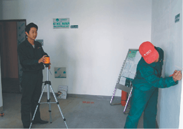施工前的準(zhǔn)備,在施工現(xiàn)場(chǎng)精確勘測(cè),進(jìn)行測(cè)量,制定基準(zhǔn)線,采用專業(yè)工具,對(duì)原有土建狀況進(jìn)行校對(duì),標(biāo)明施工安全警示標(biāo)識(shí)