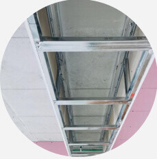 板面潔凈、順直、無翹曲、裂縫龍骨骨架各接 點(diǎn)牢固、嚴(yán)密無松動吊桿間距必須 < 1000㎜吊頂 板與板拼接處應(yīng)留有3~5mm縫隙,且留有八字縫