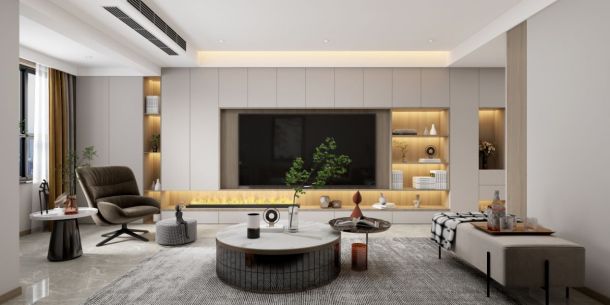 新中式,將現(xiàn)代元素和傳統(tǒng)元素結(jié)合在一起,以現(xiàn)代人的審美需求來(lái)打造富有傳統(tǒng)韻味的事物,讓傳統(tǒng)藝術(shù)的脈絡(luò)傳承下去的具有中國(guó)特色的中國(guó)風(fēng)格。在本案的整個(gè)設(shè)計(jì)中,花格背景、端景臺(tái),包括吊燈,裝飾品等等,都富于創(chuàng)造中國(guó)文化的意境,而天然石材、彩雕玻璃等新的設(shè)計(jì)元素又給中式設(shè)計(jì)風(fēng)格增加了新的詮釋,迎合了當(dāng)代人的審美需求。整個(gè)空間沉穩(wěn)大氣,溫馨舒適 。